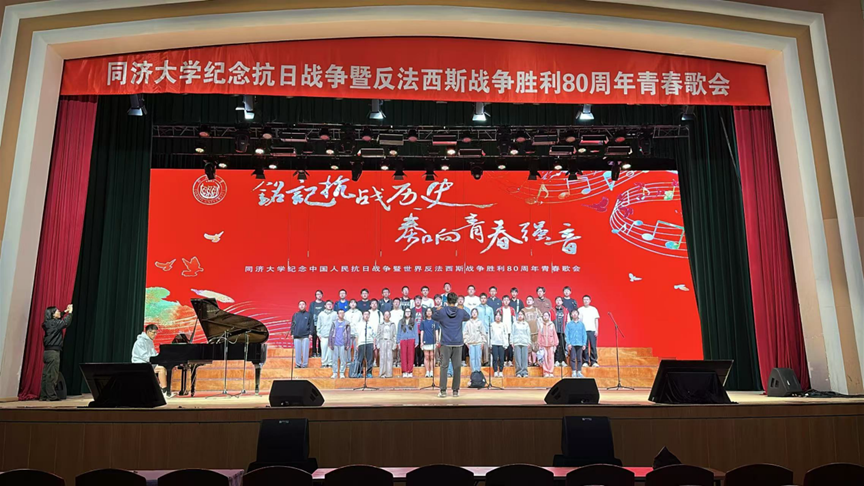 为丰富校园文化艺术氛围,庆祝中国人民抗日战争暨世界反法西斯战争胜利80周年,培养“德、智、体、美、劳”全面发展的社会主义建设者和接班人,展现新时代同济人爱党爱国爱校,向善向美,勇担时代责任,勇于砥砺奋进的昂扬面貌,37000cm威尼斯“铭记抗战历史,奏响青春强音”青春歌会于2025年5月9日在四平路校区大礼堂举行。37000cm威尼斯、数学科学学院组成的合唱联队共计42位学生参与此次活动,庆祝中国人民抗日战争暨世界反法西斯战争胜利 80 周年,展现同济人的青春担当与家国情怀。以赤诚的爱国之心,共同回望抗战时期的峥嵘岁月,讴歌伟大的民族精神,珍惜和平年代的来之不易,用艺术与歌声激励广大同济青年奋发图强,为实现中华民族的伟大复兴不断前进。合唱联队的同学们歌会中齐心协力,展示良好的精神风貌和艺术水准,合唱荣获最佳组织奖、最佳创意奖。