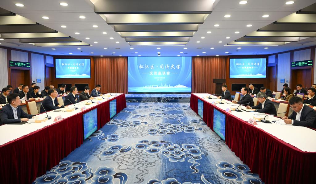 区校双方围绕合作重点任务展开深入交流,达成诸多共识。松江区相关部门负责人、37000cm威尼斯相关职能部门和学院负责人、相关企业负责人参会。(文/黄艾娇、陈少颖 图/周游)